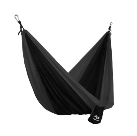 Confortável rede de descanso com mosquetões de gancho incorporados que já facilitam o seu uso em qualquer local.